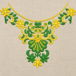 Bring an elegant touch of handcrafted beauty to your garments with this intricately digitized floral neck embroidery design. Created especially for necklines, this design features a graceful combination of floral curves and clean detailing that enhances kurtis, blouses, tunics, gowns, and boutique wear. Whether you're working on a custom outfit or adding new life to an old favorite, this piece delivers a refined and artistic finish.
